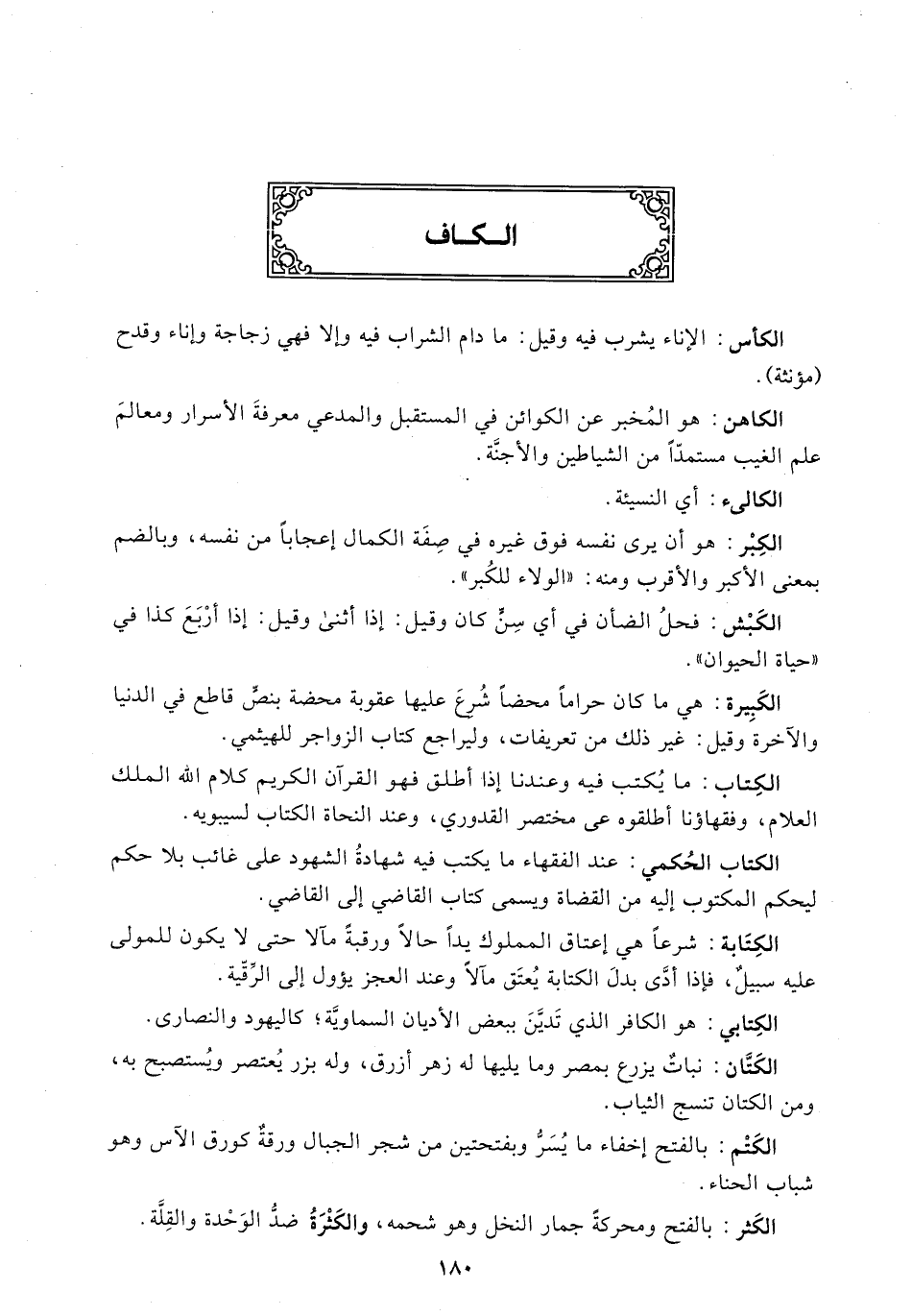 الكِتاب: ما يُكتب فيه وعندنا إذا أطلق فهو القرآن الكريم كلام الله الملك العلام، وفقهاؤنا أطلقوه عى مختصر القدوري، وعند النحاة الكتاب لسيبويه.