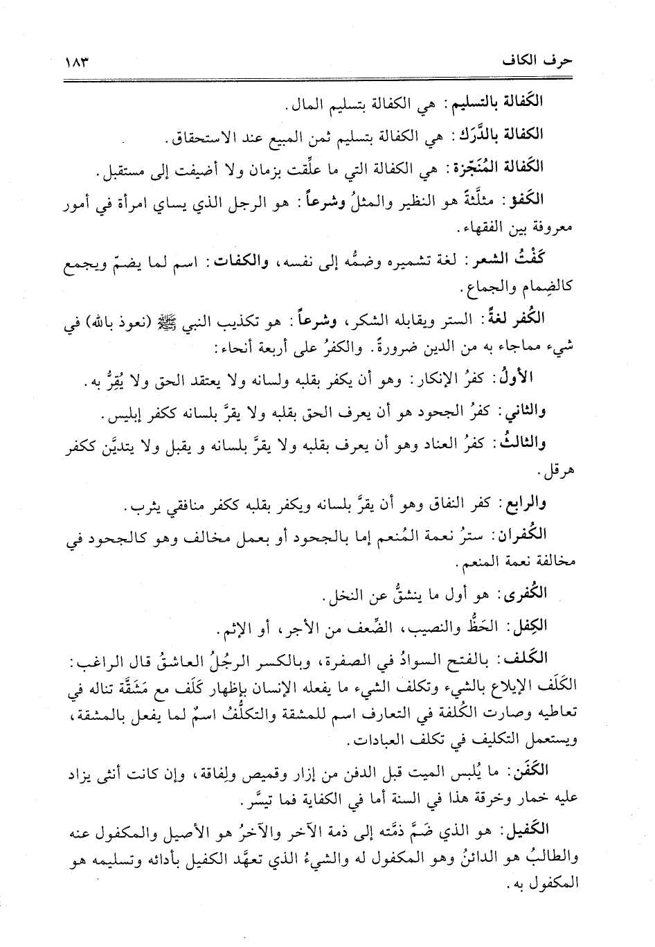 الكُفران: سترُ نعمة المُنعم إما بالجحود أو يعمل مخالف وهو كالجحود في مخالفة نعمة المنعم.