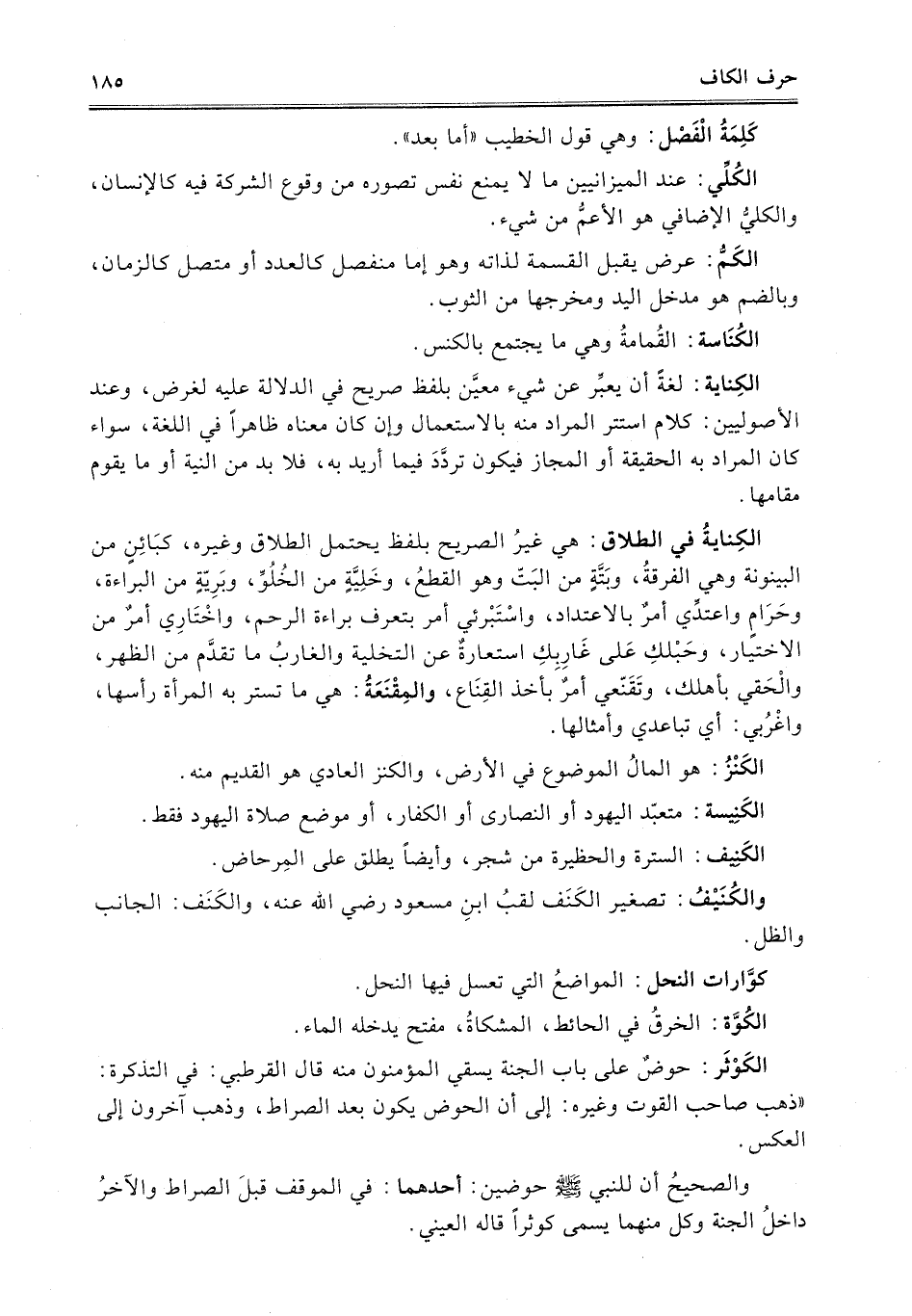 الكَوْثَر: حوضٌ على باب الجنة يسقي المؤمنون منه قال القرطبي: في التذكرة: "ذهب صاحب القوت وغيره: إلى أن الحوض يكون بعد الصراط، وذهب آخرون إلى العكس.