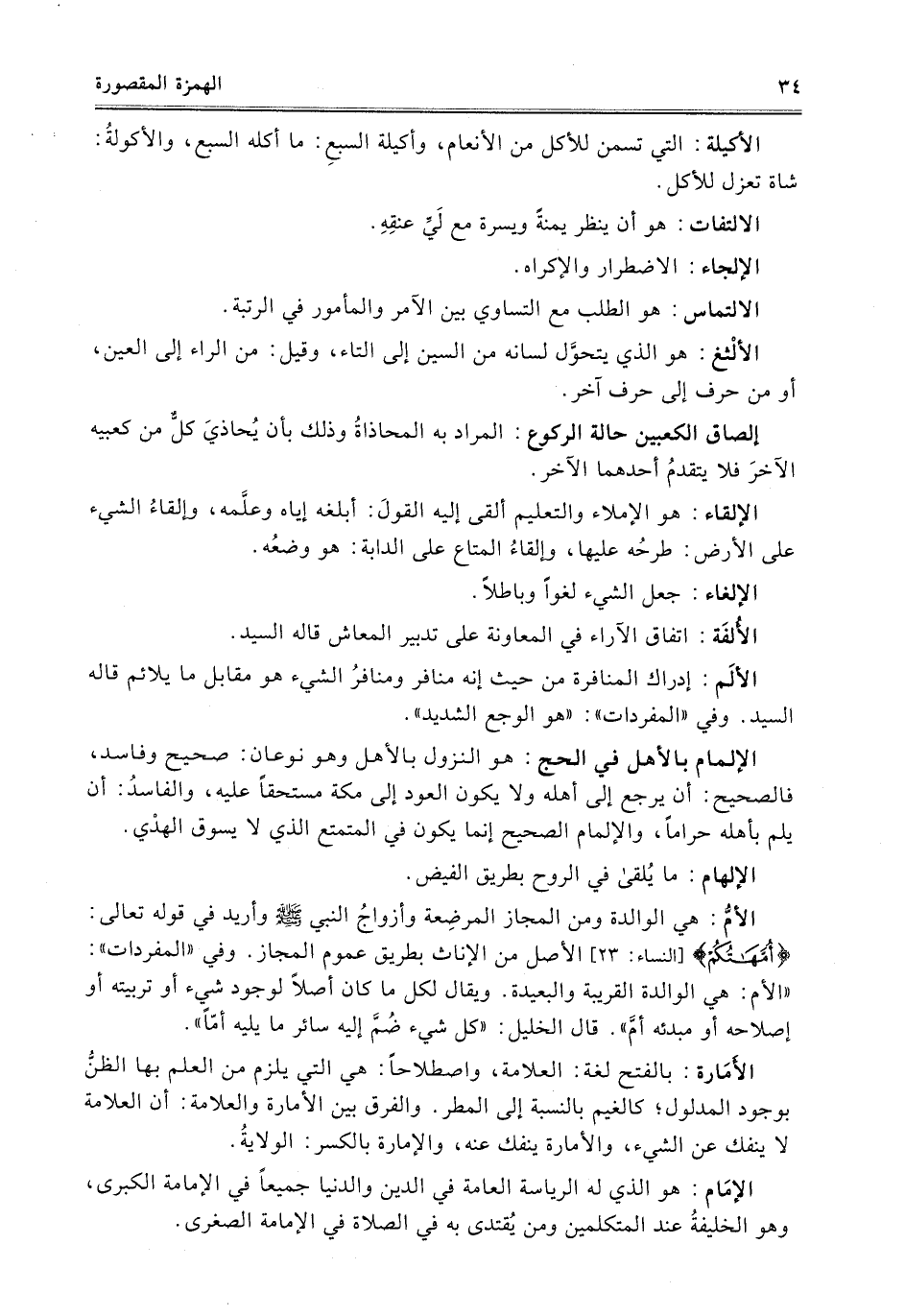 الإمَام: هو الذي له الرياسة العامة في الدين والدنيا جميعاً في الإمامة الكبرى، وهو الخليفةُ عند المتكلمين ومن يُقتدى به في الصلاة في الإمامة الصغرى.