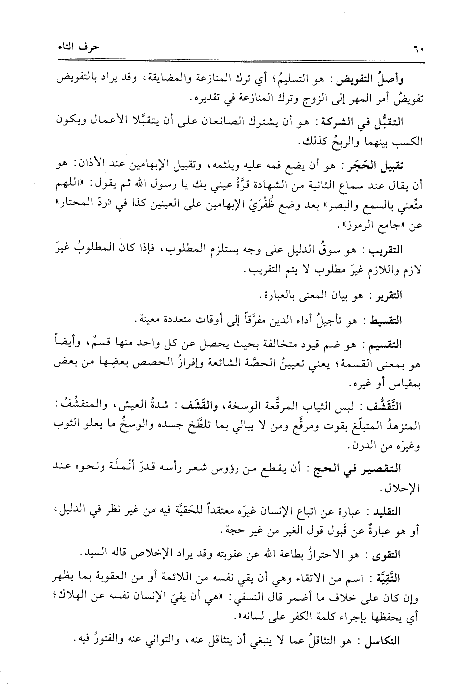 التقليد: عبارة عن إتباع الإنسان غيرَه معتقداً للحَقيَّة فيه من غير نظر في الدليل، أو هو عبارةٌ عن قَبول قول الغير من غير حجة.