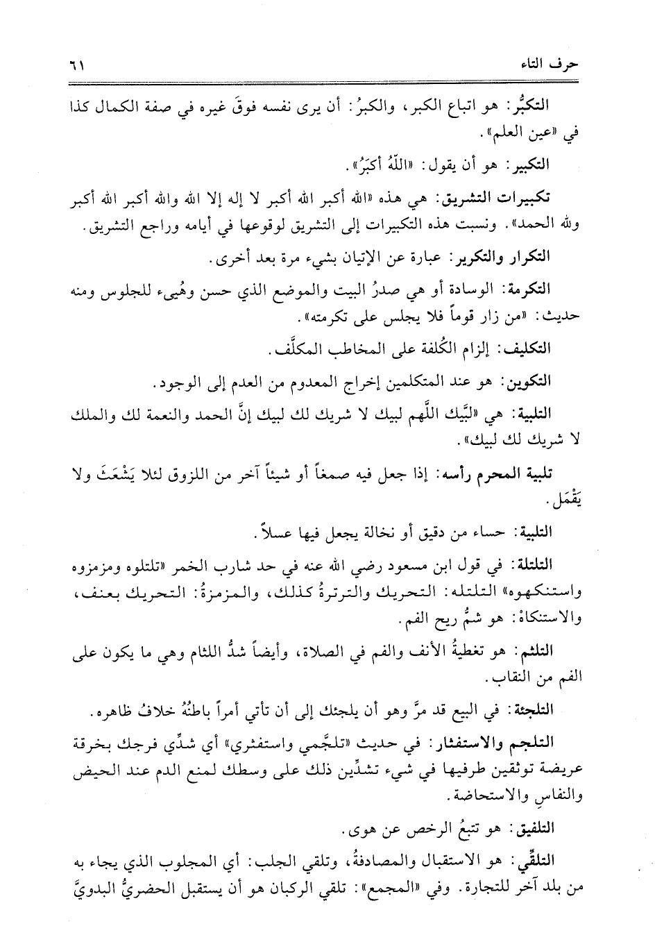 تكبيرات التشريق: هي هذه "الله أكبر الله أكبر لا إله إلا الله والله أكبر الله أكبر ولله الحمد". ونسبت هذه التكبيرات إلى التشريق لوقوعها في أيامه وراجع التشريق.