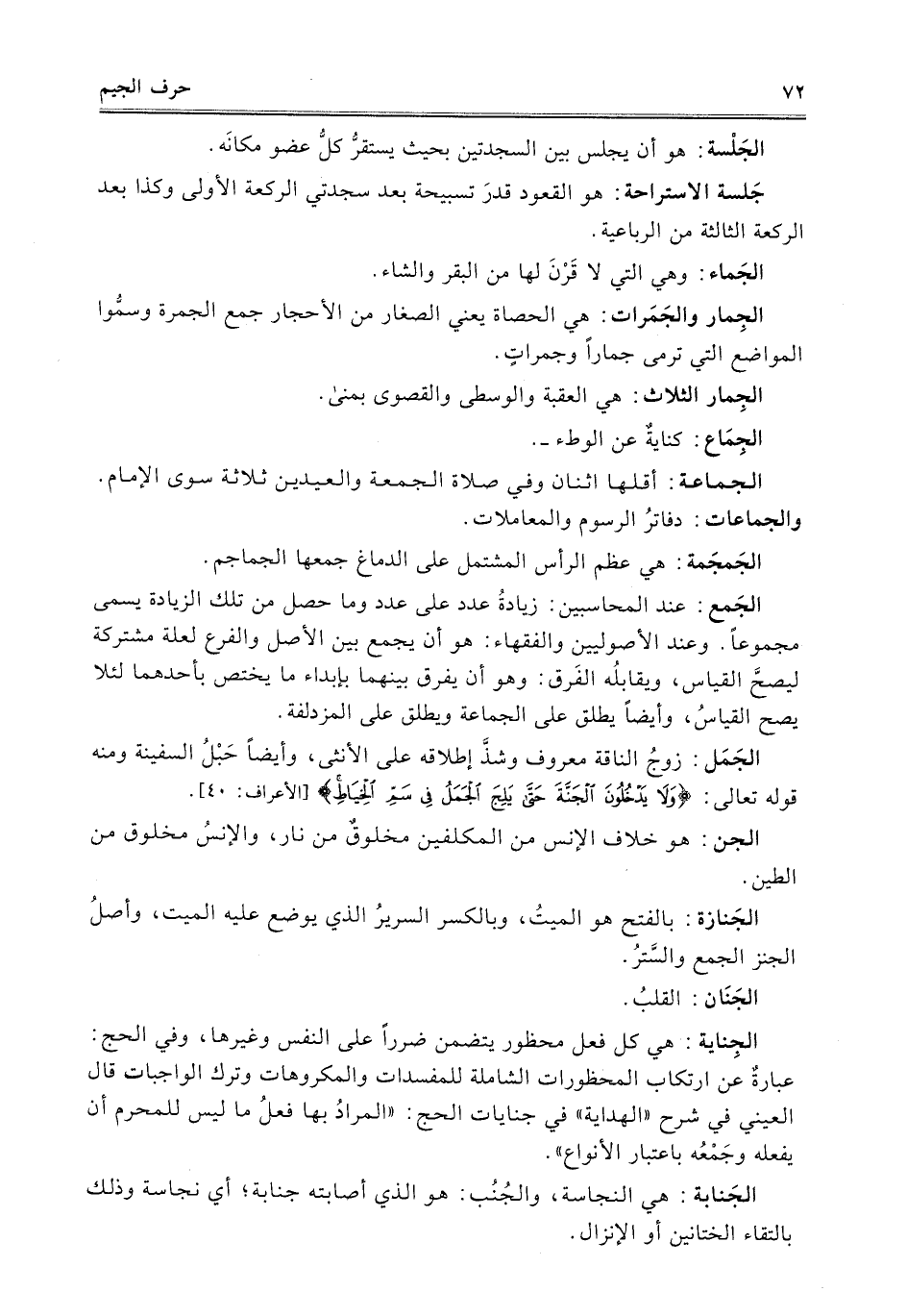الجَمَل: زوجُ الناقة معروف وشذَّ إطلاقه على الأنثى، وأيضاً حَبْلُ السفينة ومنه قوله تعالى: {وَلَا يَدْخُلُونَ الْجَنَّةَ حَتَّى يَلِجَ الْجَمَلُ فِي سَمِّ الْخِيَاطِ} [الأعراف:40].