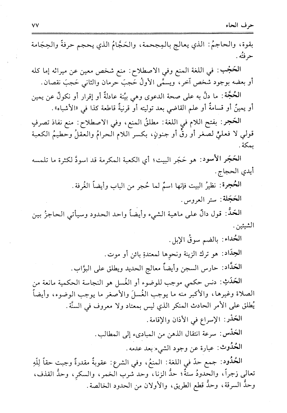 الحُدُود: جمع حدّ في اللغة: المنعُ، وفي الشرع: عقوبةٌ مقدرةٌ وجبت حقاً لِلّهِ تعالى زجراً، والحدودُ ستةٌ، حدُّ الزنا، وحد شرب الخمر، والسكرِ، وحدُّ القذف، وحدُّ السرقة، وحدُّ قطع الطريق، والأولان من الحدود الخالصة.