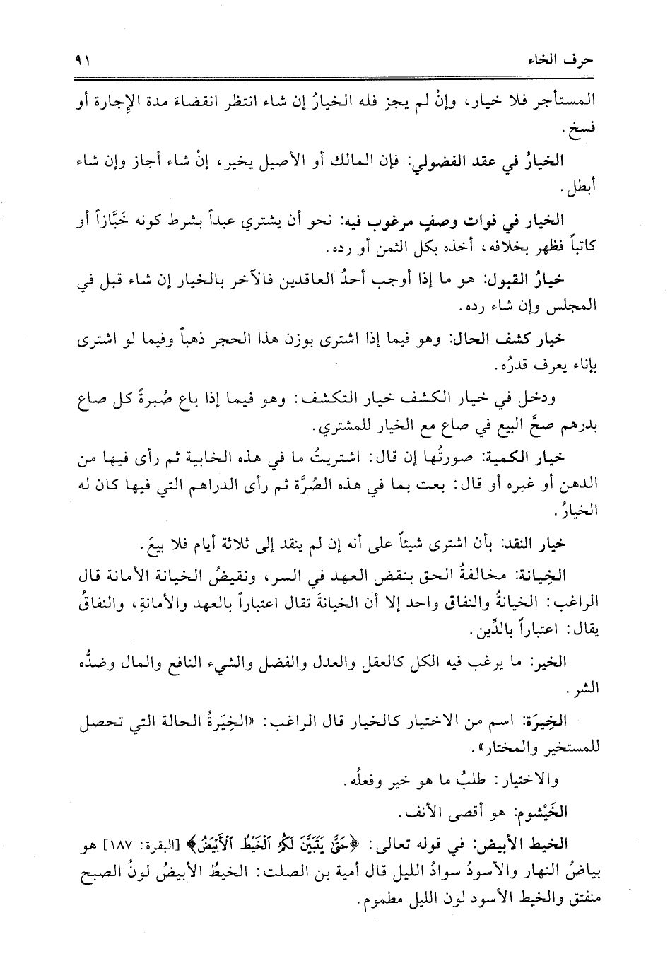 خيار الكمية: صورتُها إن قال: اشتريتُ ما في هذه الخابية ثم رأى فيها من الدهن أو غيره أو قال: بعت بما في هذه الصُرَّة ثم رأى الدراهم التي فيها كان له الخيارُ.