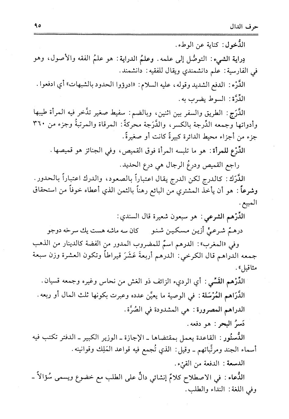 دِراية الشيء: التوصُّل إلى علمه. وعلمُ الدراية: هو علمُ الفقه والأصول، وهو في الفارسية: علم دانشمندي ويقال للفقيه: دانشمند.