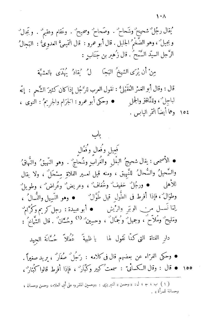 يقال رجل شحيح وشحاح وصحاح وصحيح وعقام وعقيم وبجال وبجيل وهو الضخم الجليل قال أبو عمرو قال التميمي العدوي البجال الرجل السيد السمح قال زهير بن جناب