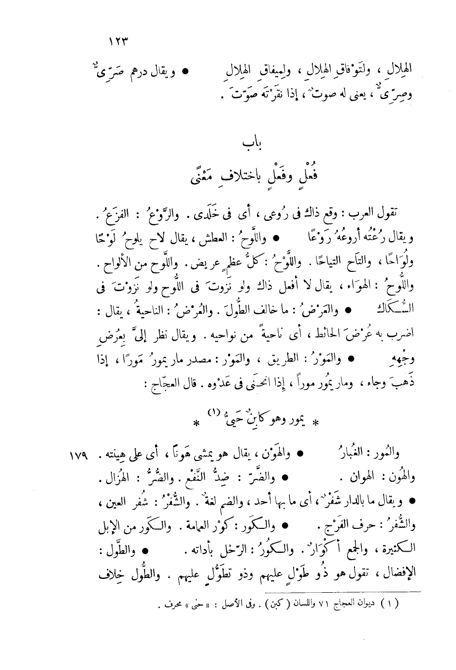 ويقال ما بالدار شفر أي ما بها أحد والضم لغة والشفر شفر العين والشفر حرف الفرج والكور كور العمامة والكور من الإبل الكثيرة والجمع أكوار والكور الرحل بأداته والطول الإفضال تقول هو ذو طول عليهم وذو تطول عليهم والطول خلاف