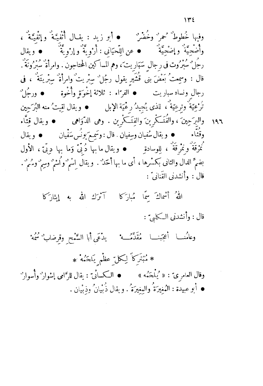 وفيها خطوط حمر وخضر أبو زيد يقال أثفية وإثفية وأضحية وإضحية عن اللحياني أروية وإروية