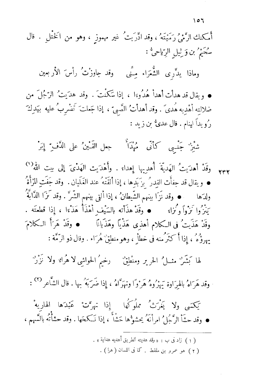 ويقال قد جفأت القدر بزبدها إذا ألقته عند الغليان وقد جفت المرأة ولدها وقد نزا بينهم الشيطان إذا ألقى بينهم الشر وقد نزا الدابة ينزو نزوا ونزاء وقد هذأته بالسيف أهذأ هذءا إذا قطعته وقد هذيت في الكلام أهذي هذيا وهذيانا وقد هرأ الكلام يهرؤه إذا أكثر منه في خطإ وهو منطق هراء وقال ذو الرمة