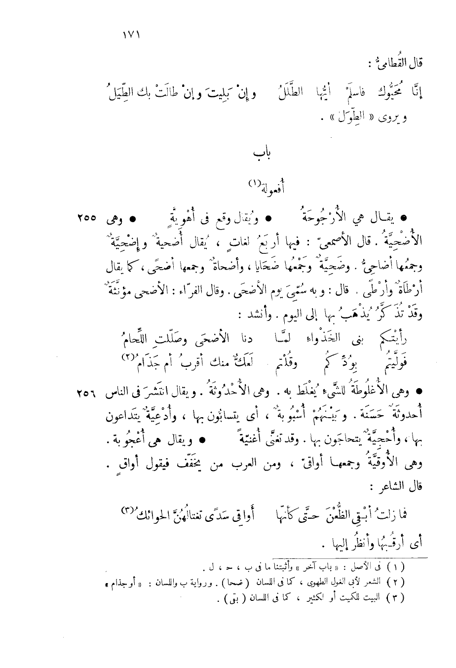 ويروى الطول باب أفعولة