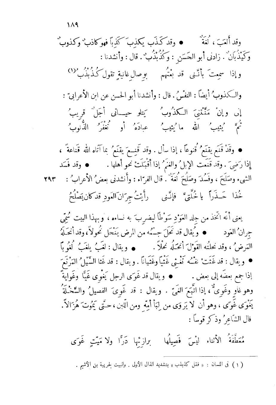 والكذوب أيضا النفس قال وأنشدنا أبو الحسن عن ابن الأعرابي