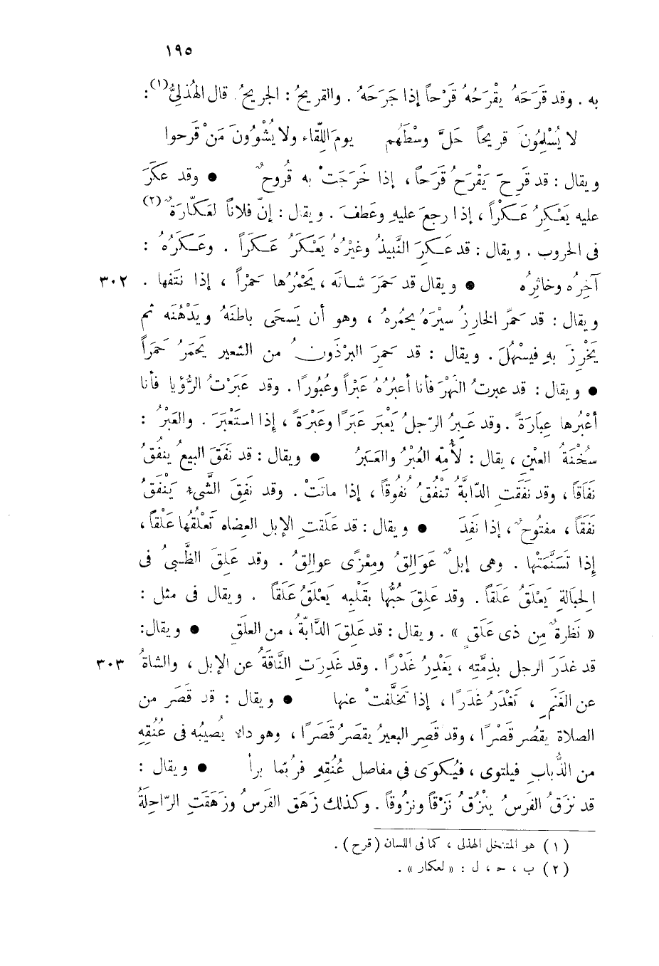 ويقال قد قرح يقرح قرحا إذا خرجت به قروح وقد عكر عليه يعكر عكرا إذا رجع عليه وعطف