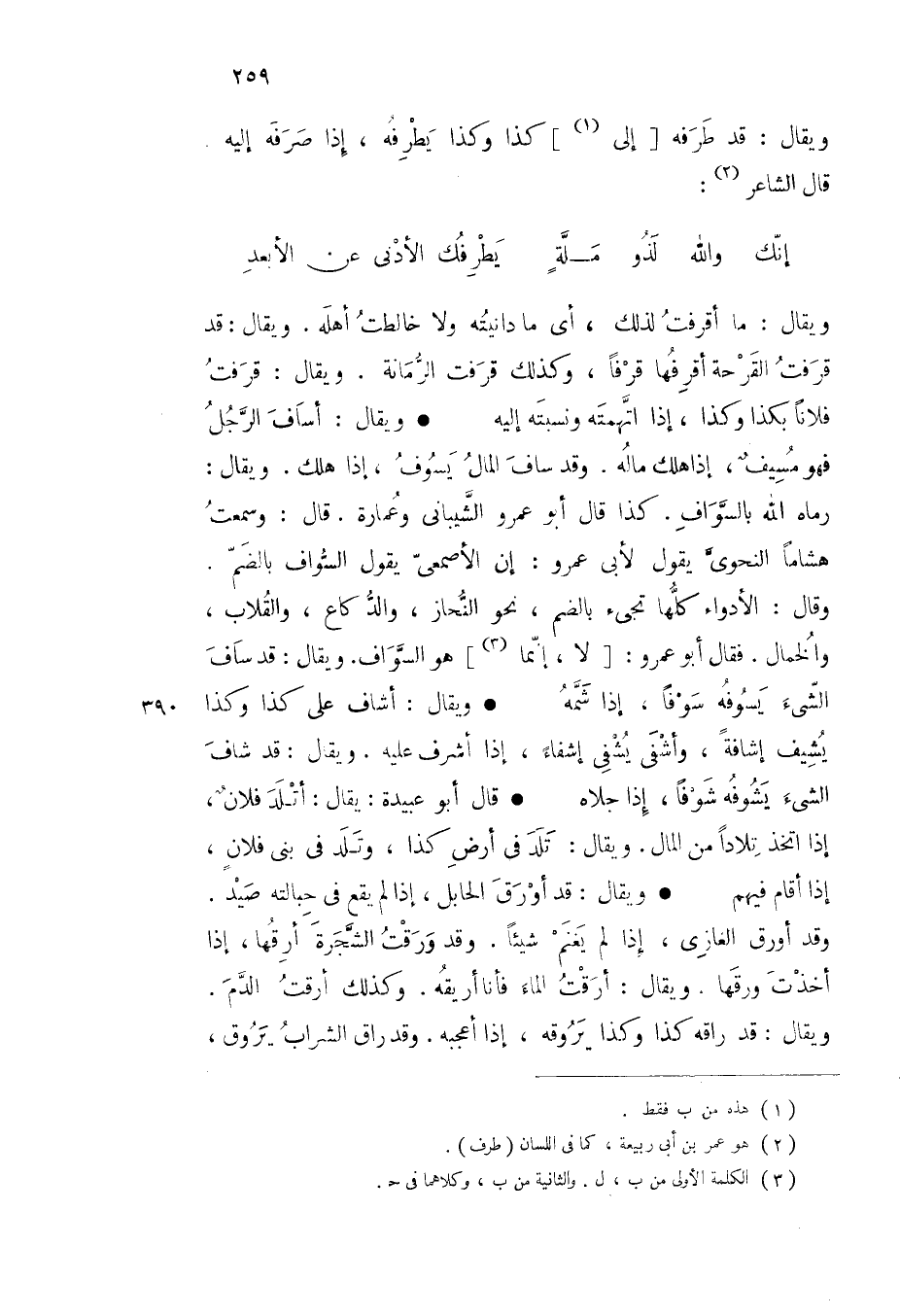 ويقال قد ساف الشيء يسوفه سوفا إذا شمه