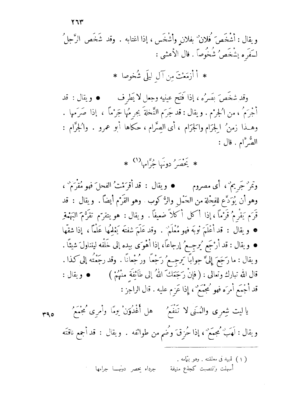 ويقال قد جرم النخلة يجرمها جرما إذا صرمها وهذا زمن الجرام والجرام أي الصرام حكاها أبو عمرو والجرام الصرام قال