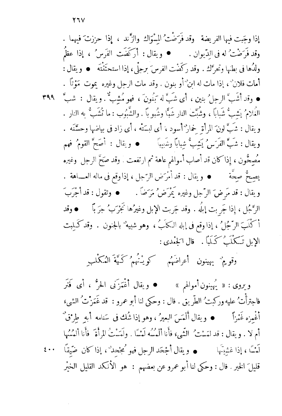 ويقال قد مرض الرجل وغيره يمرض مرضا وتقول قد أجرب الرجل إذا جربت إبله وقد جربت الإبل وغيرها تجرب جربا وقد أكلب الرجل إذا وقع في إبله الكلب وهو شبيه بالجنون وقد كلبت الإبل تكلب كلبا قال الجعدي