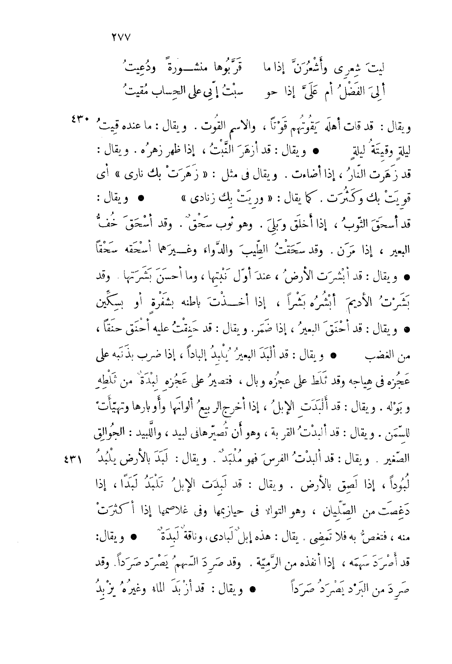 ويقال قد ألبدت الإبل إذا أخرج الربيع ألوانها وأوبارها وتهيأت للسمن