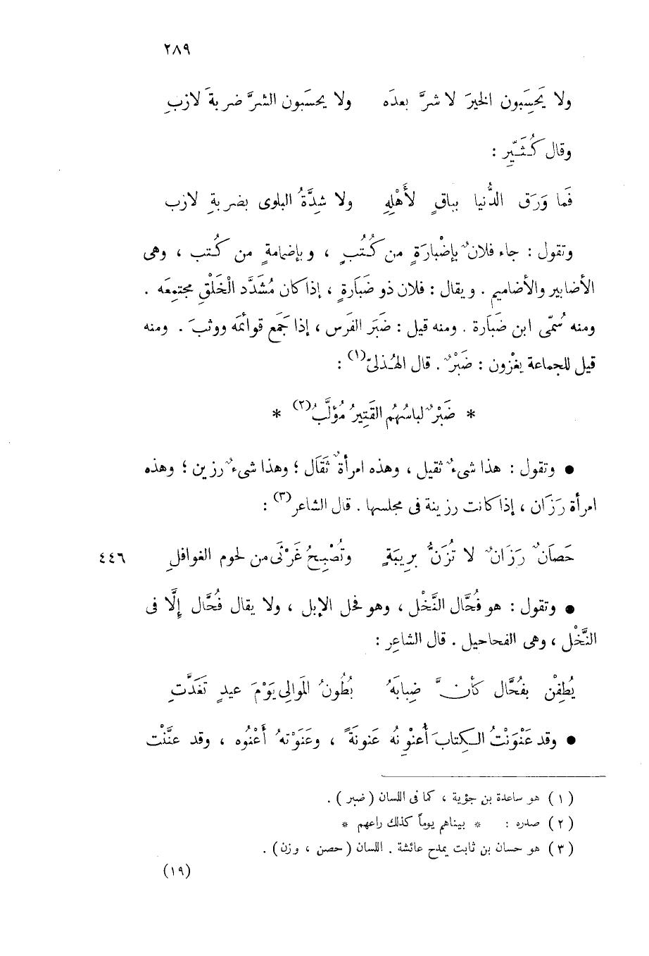 ( فما ورق الدنيا بباق لأهله ... ولا شدة البلوى بضربة لازب )