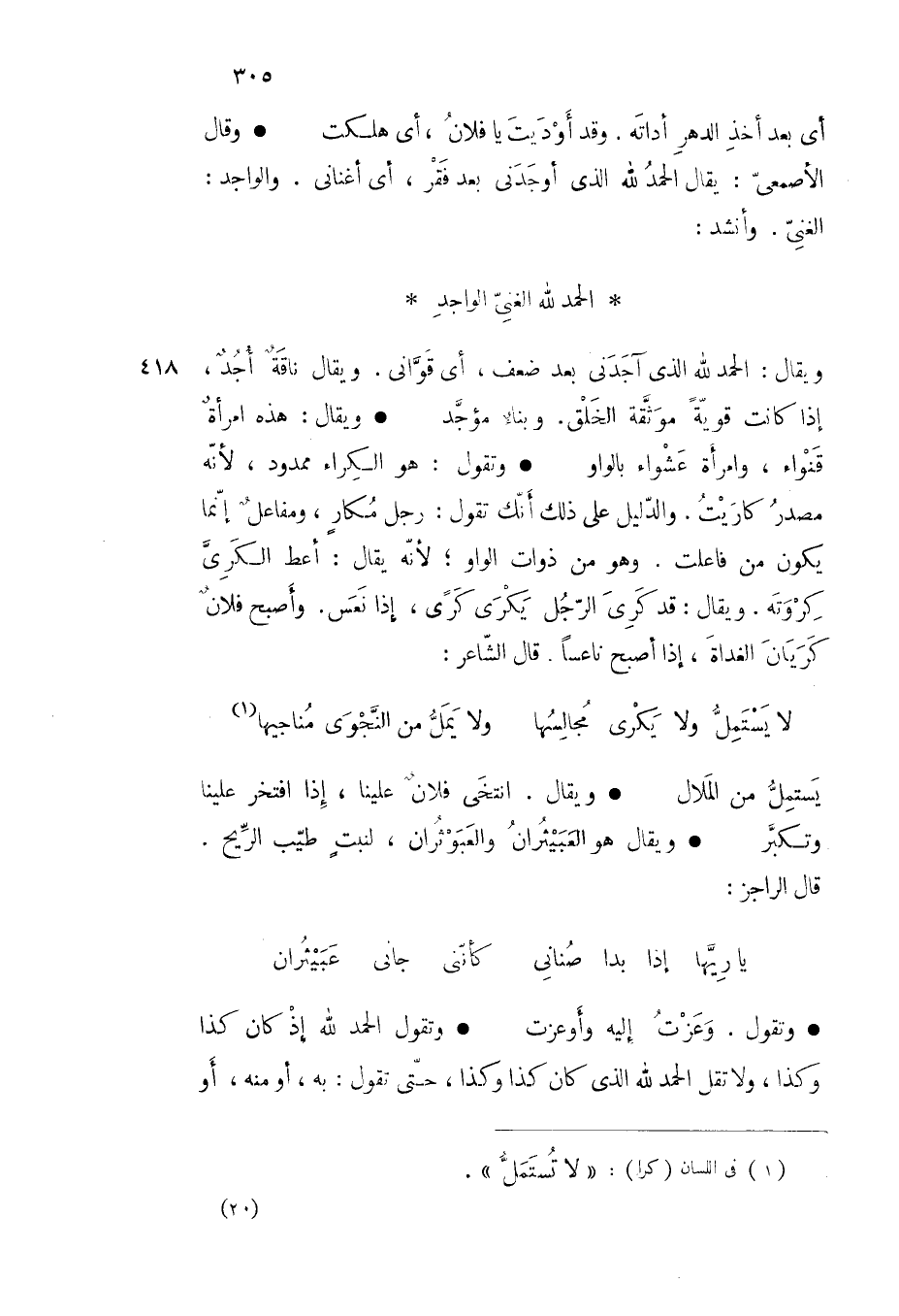أي بعد أخذ الدهر أداته وقد أوديت يا فلان أي هلكت وقال الأصمعي يقال الحمد لله الذي أوجدني بعد فقر أي أغناني والواجد الغنى وأنشد