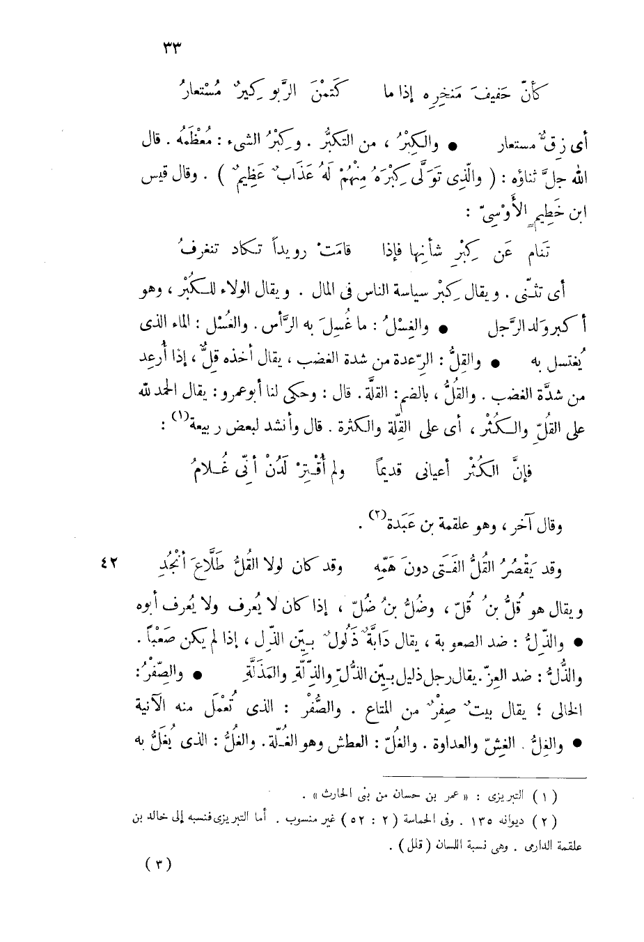 ويقال الولاء للكبر وهو أكبر ولد الرجل والغسل ما غسل به الرأس والغسل الماء الذي يغتسل به والقل الرعدة من شدة الغضب يقال أخذه قل إذا أرعد من شدة الغضب والقل بالضم القلة قال وحكى لنا أبو عمرو يقال الحمد لله على القل والكثر أي على القلة والكثرة قال وأنشد لبعض ربيعة