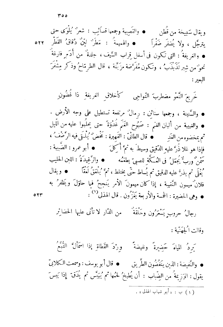 ويقال سبيخة من قطن والقصيبة وجمعها قصائب شعر يلوى حتى يترجل ولا يضفر ضفرا والهميمة مطر لين دقاق القطر