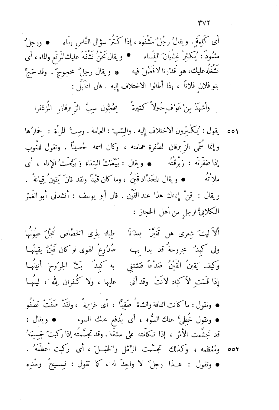 يقول يكثرون الاختلاف إليه والسب العمامة وسب المرأة خمارها وإنما سمي الزبرقان لصفرة عمامته وكان اسمه حصينا وتقول للثوب إذا صفرته زبرقته
