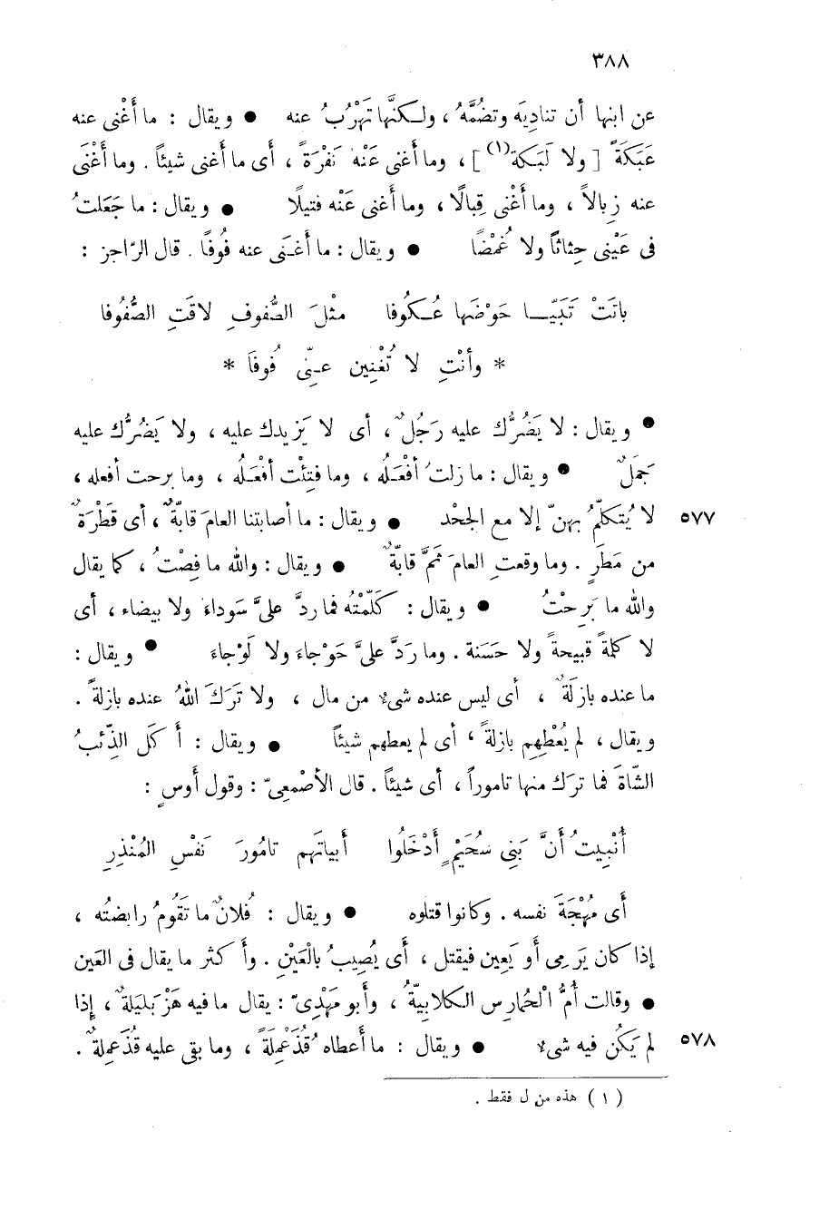 ويقال ما أغنى عنه عبكة ولا لبكة وما أغنى عنه نفرة أي ما أغنى شيئا وما أغنى عنه زبالا وما أغنى قبالا وما أغنى عنه فتيلا