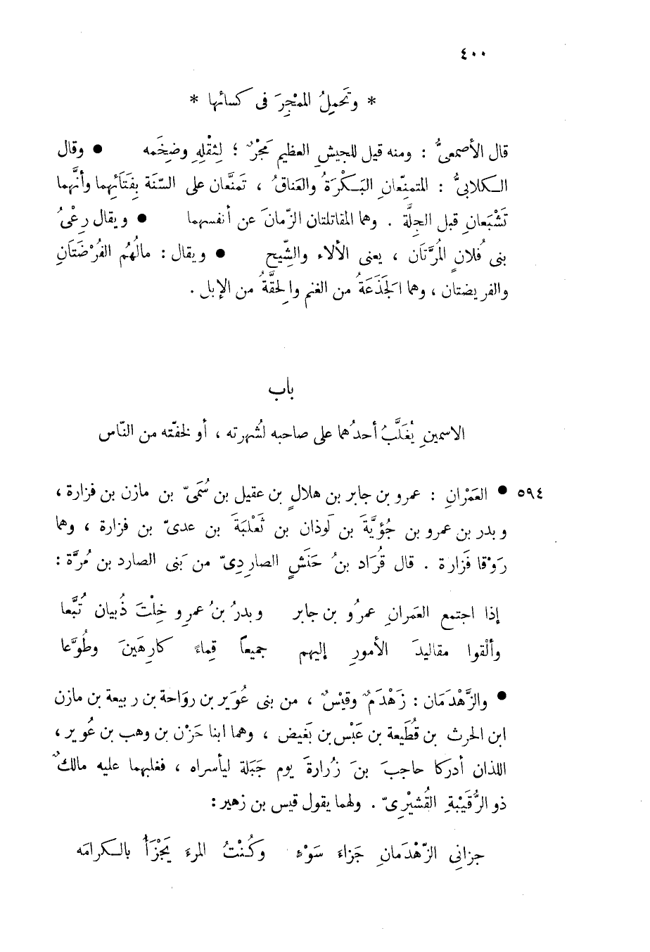 العمران عمرو بن جابر بن هلال بن عقيل بن سمى بن مازن بن فزارة وبدر بن عمرو بن جؤية بن لوذان بن ثعلبة بن عدي بن فزارة وهما روقا فزارة قال قراد بن حنش الصاردي من بني الصادر بن مرة