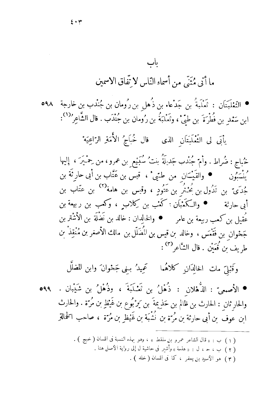 باب ما أتى مثنى من أسماء الناس لاتفاق الاسمين