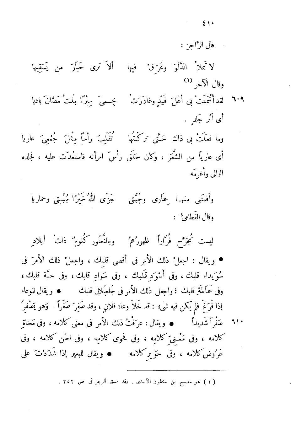 ( وما فعلت بي ذاك حتى تركتها ... تقلب رأسا مثل جمعي عاريا )