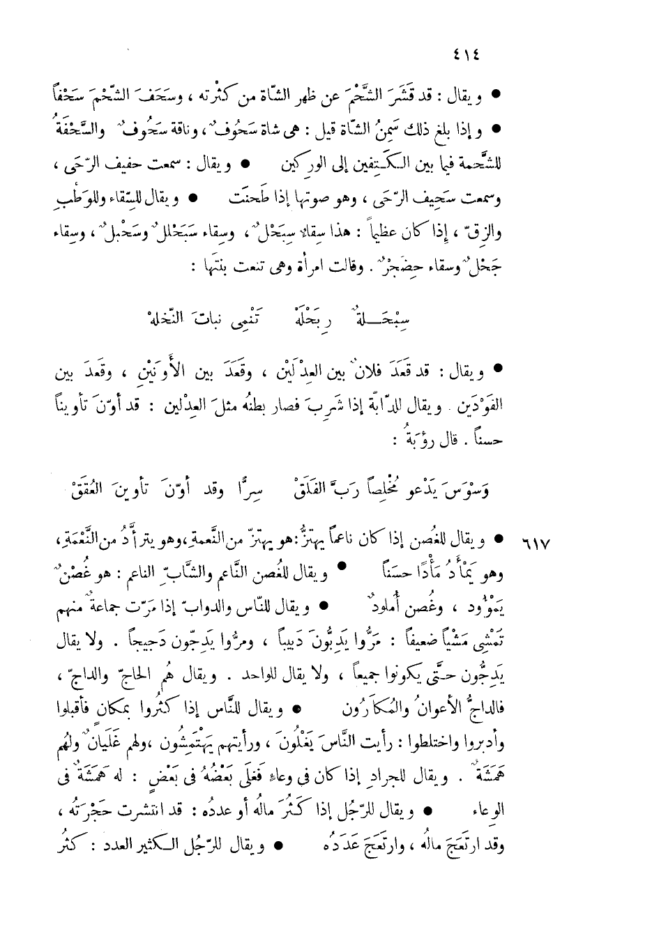 ويقال للغصن إذا كان ناعما يهتز هو يهتز من النعمة وهو يترأد من النعمة وهو يمأد مأدا حسنا
