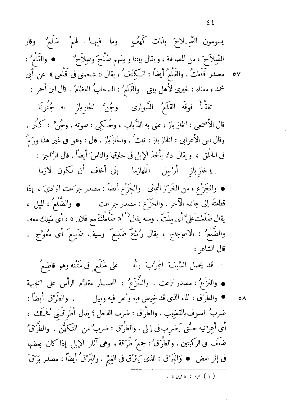 ويقال بيننا وبينهم صلح وصلاح والقلع مصدر قلعت والقلع أيضا الكنف يقل شحمتي في قلعي عن أبي محمد معناه خيري لأهل بيتي والقلع السحاب العظام قال ابن أحمر