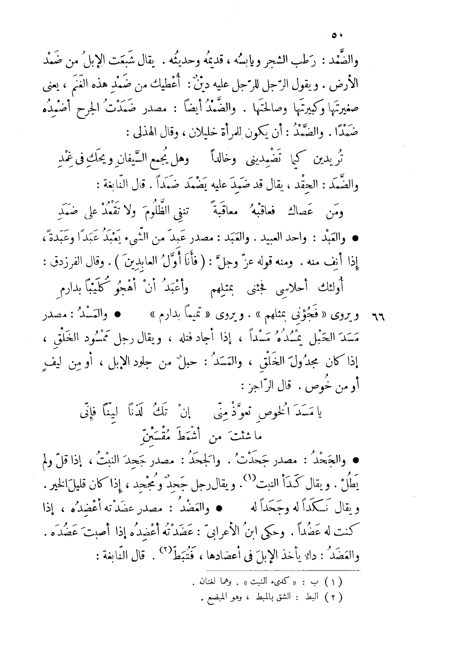 ويقال نكدا له وجحدا له والعضد مصدر عضدته أعضده إذا كنت له عضدا وحكى ابن الأعرابي عضدته أضده إذا أصبت عضده والعضد داء يأخذ الإبل في أعضادها فتبط قال النابغة
