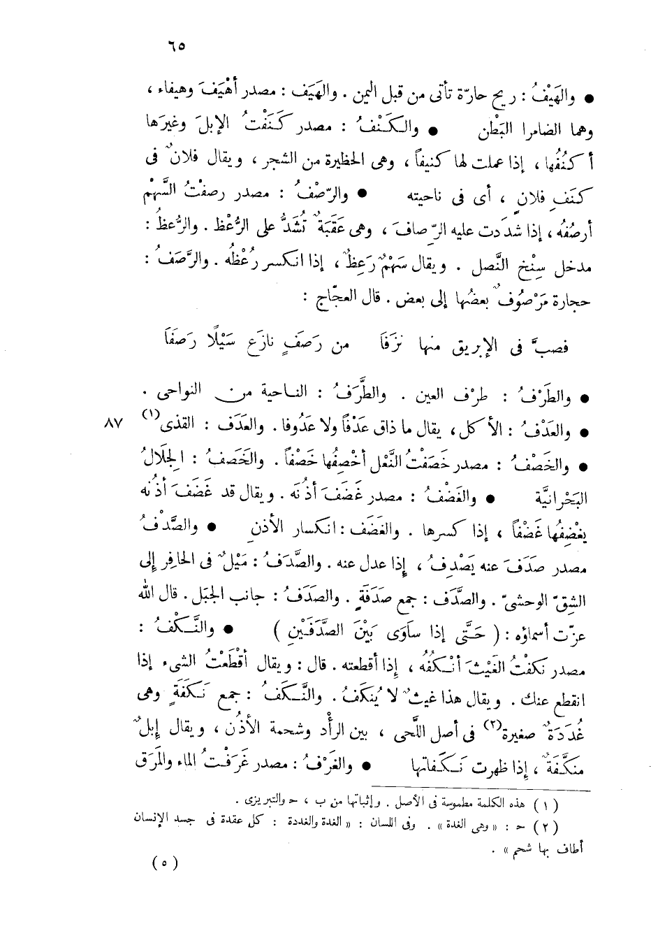 ( فصب في الإبريق منها نزفا ... من رصف نازع سيلا رصفا )