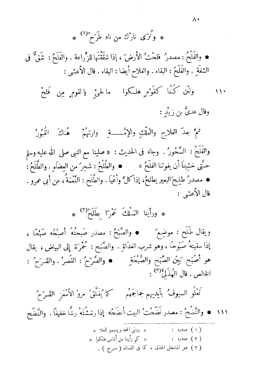 ويقال طلح موضع والصبح مصدر صبحته أصبحه صبحا إذا سقيته صبوحا وهو شرب الغداة والصبح حمرة إلى البياض يقال هو أصبح بين الصبح والصبحة والصرح القصر والصرح الخالص قال الهذلي
