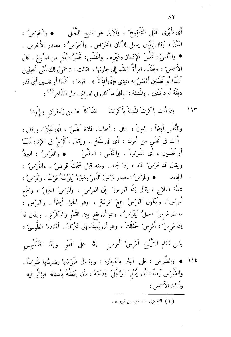 ويقال اكرع في الإناء نفسا أو نفسين أي اشرب والنفس التنفس والقرس البرد