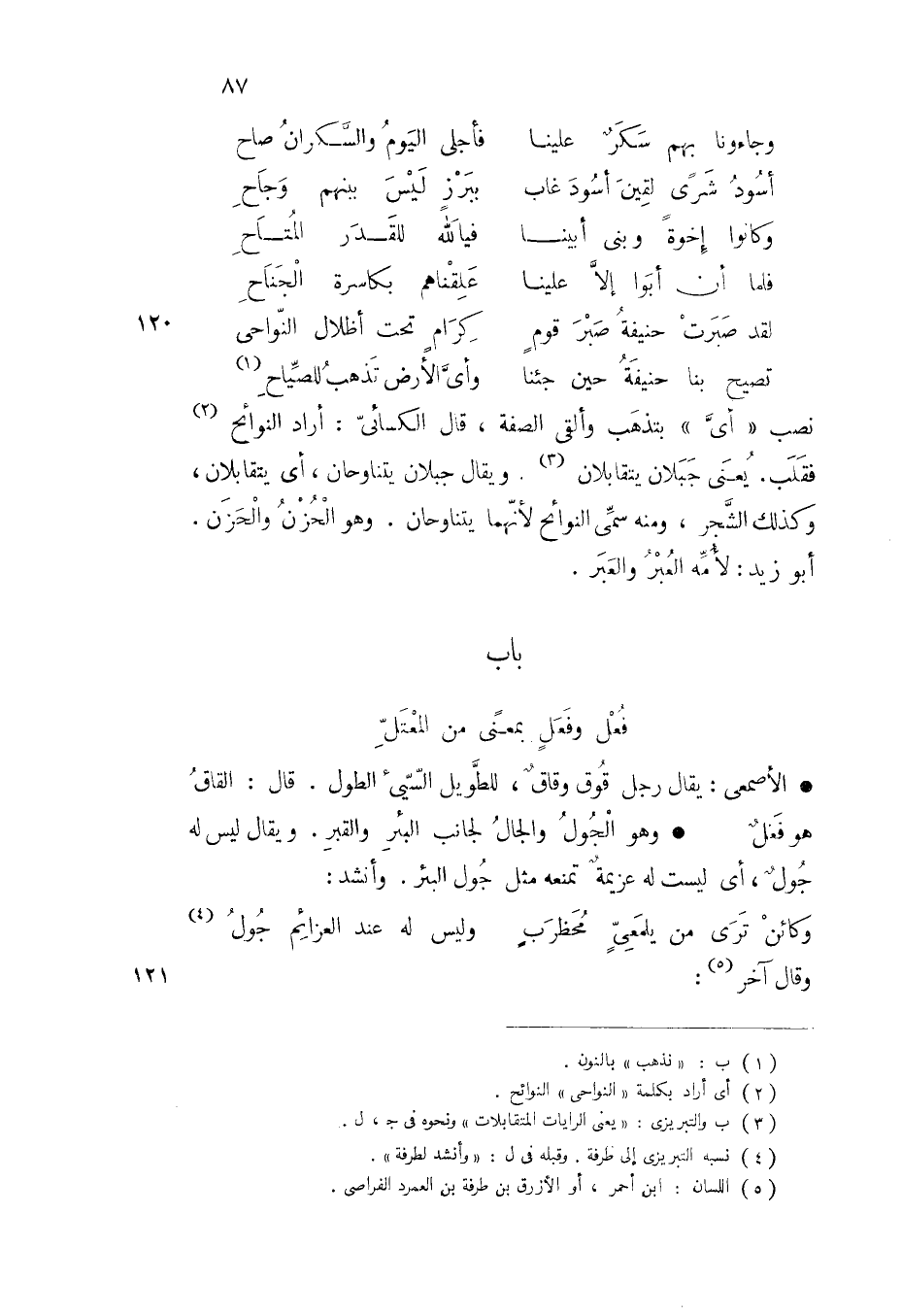 ويقال جبلان يتناوحان أي يتقابلان وكذلك الشجر ومنه سمى النوائح لأنهما يتناوحان وهو الحزن والحزن أبو زيد لأمه العبر والعبر باب فعل وفعل بمعنى من المعتل