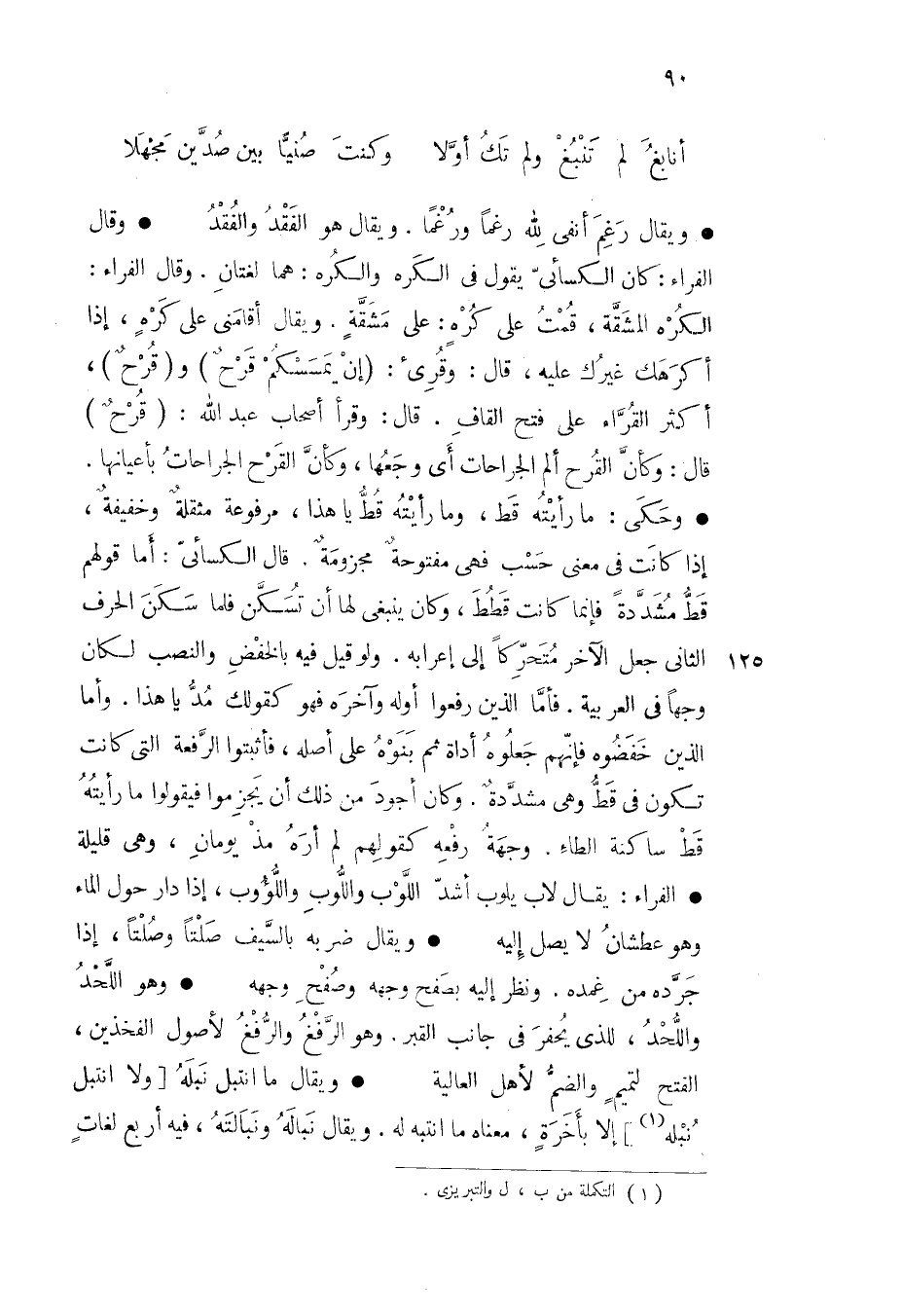 ويقال ما انتبل نبله ولا انتبل نبله إلا بأخرة معناه ما انتبه له