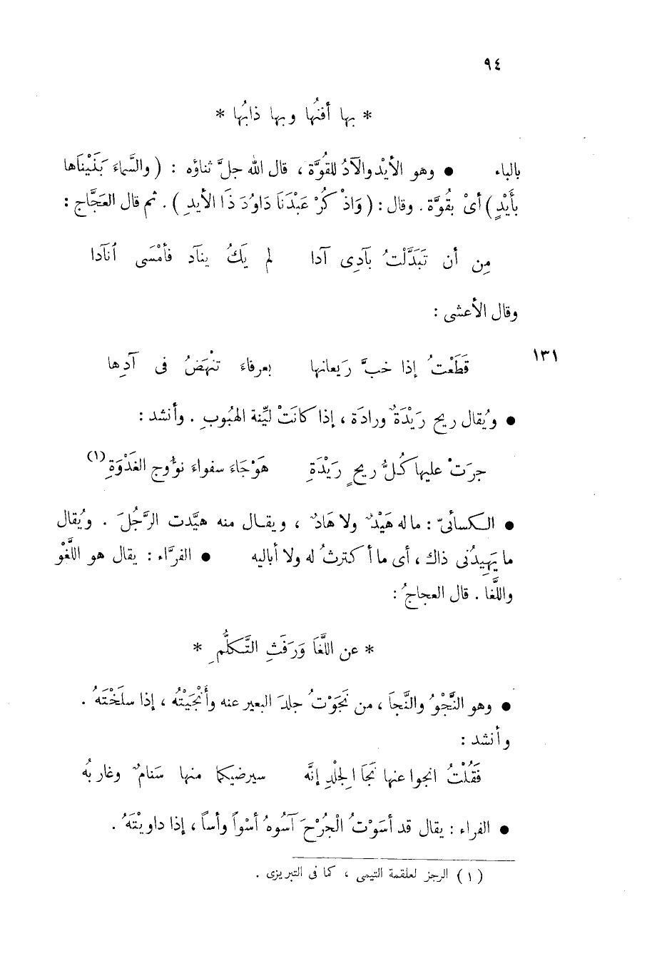 ( جرت عليها كل ريح ريدة ... هوجاء سفواء نؤوج الغدوة )