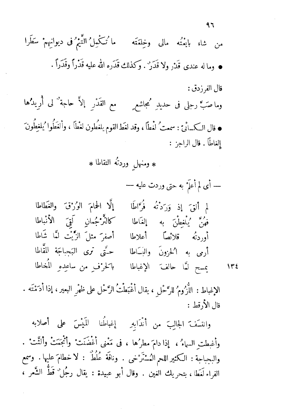 ( لم ألق إذ وردته فراطا ... إلا الحمام الورق والغطاطا )