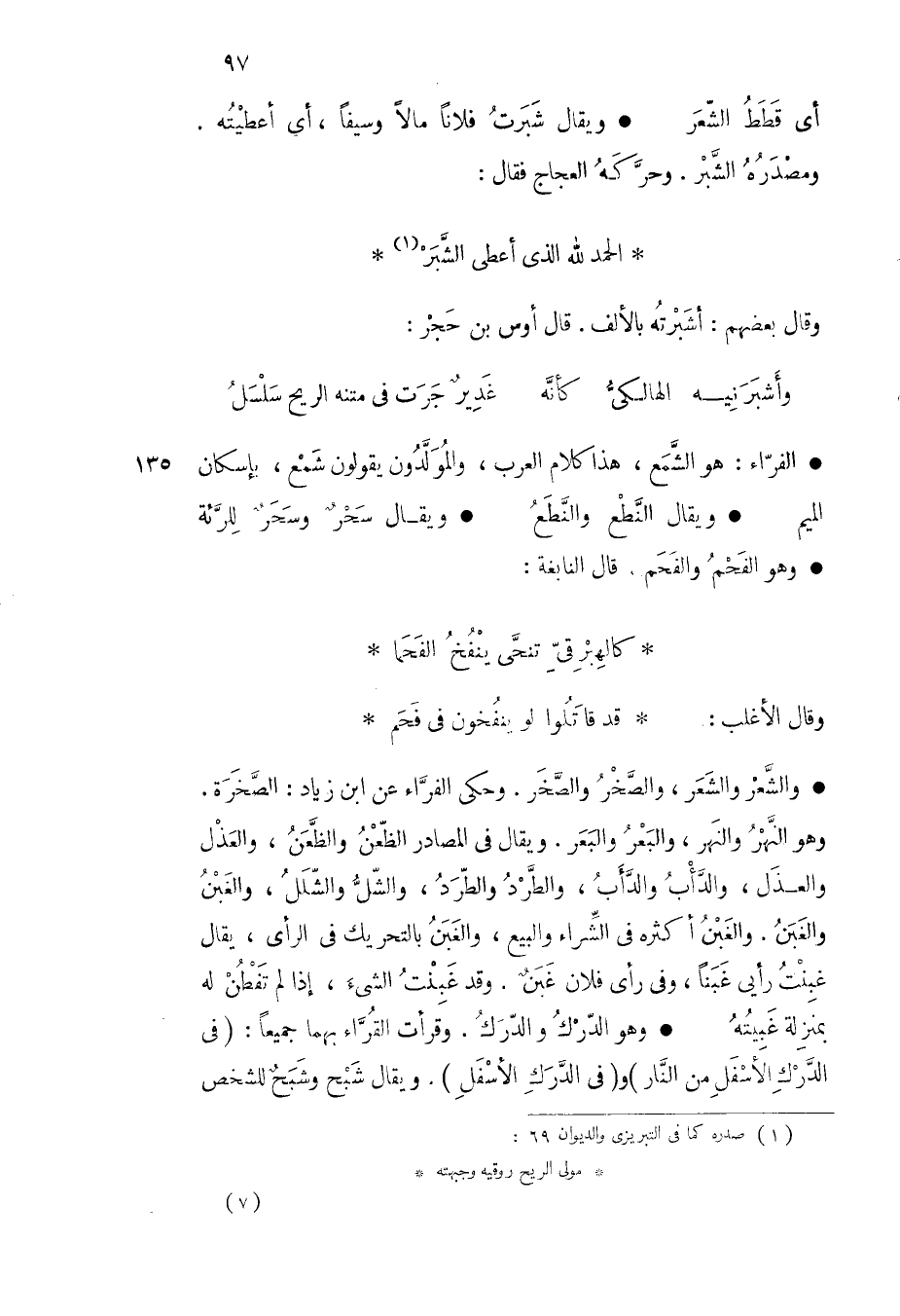 والشعر والشعر والصخر والصخر وحكى الفراء عن ابن زياد الصخرة وهو النهر والنهر والبعر والبعر