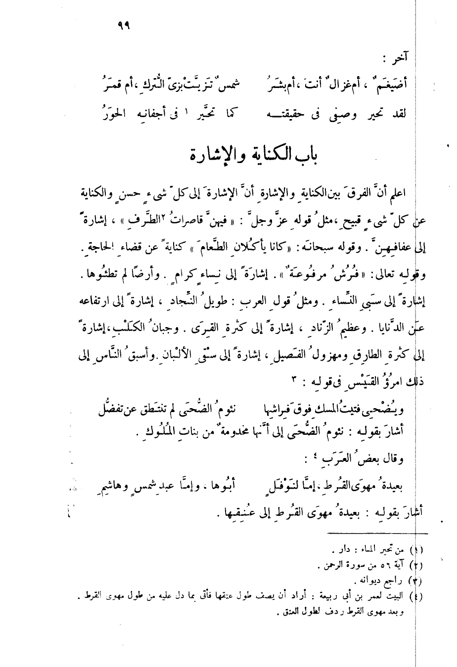 أشار بقوله: كأن ثيابه في سرحة إلى طول قامته. ويقوله: يحذى نعال السبت إلى أنه ملك. وبقوله: ليس بتوأم إلى أنه قوي شديد.