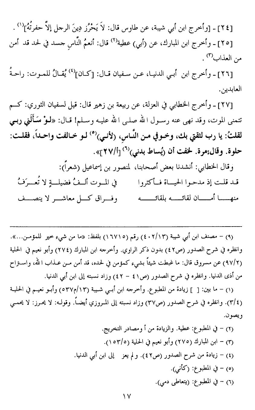 وعن سفيان قال:) كان يقال للموت راحة للعابدين (.