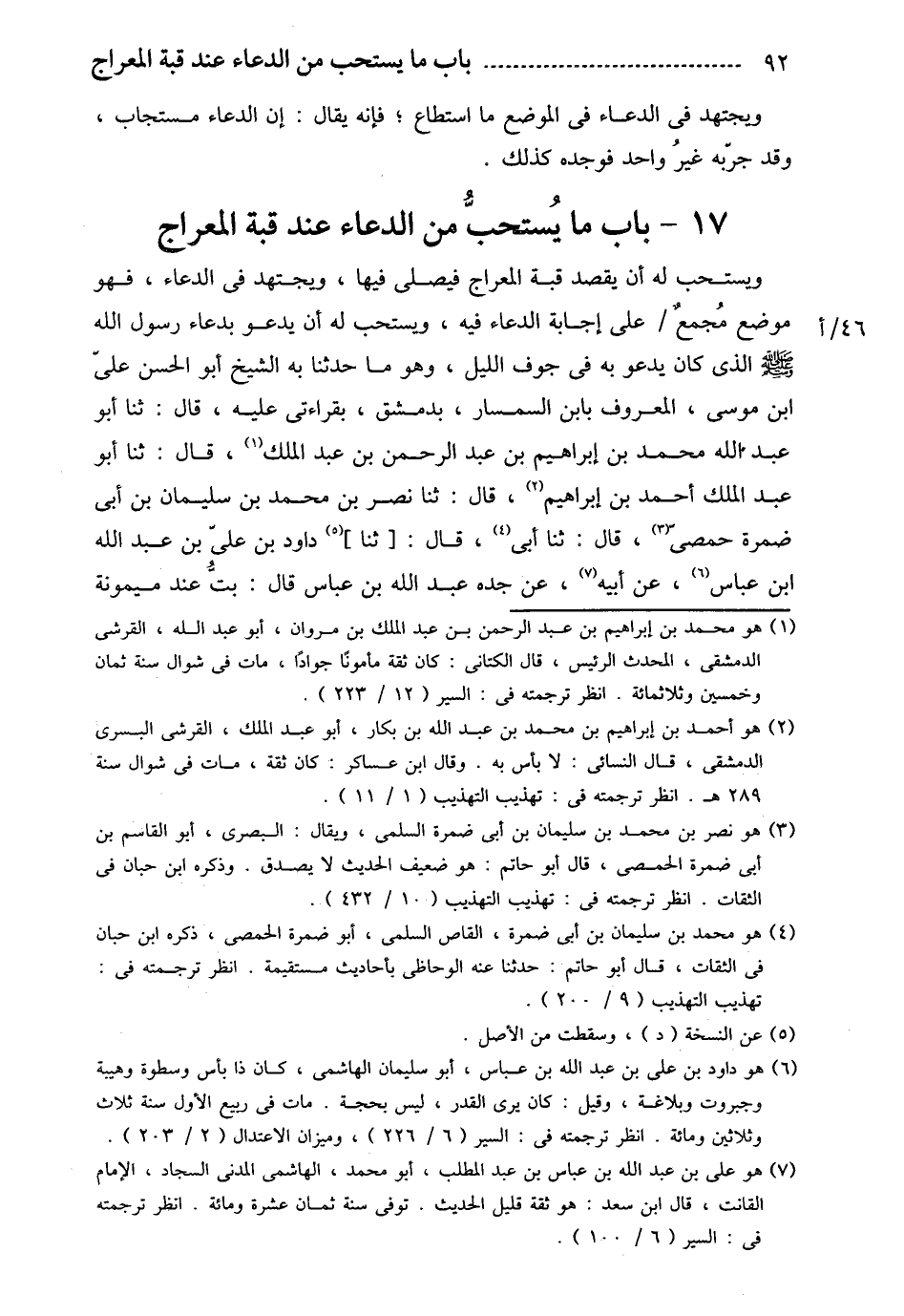 17 - باب ما يستحب من الدعاء عند قبة المعراج