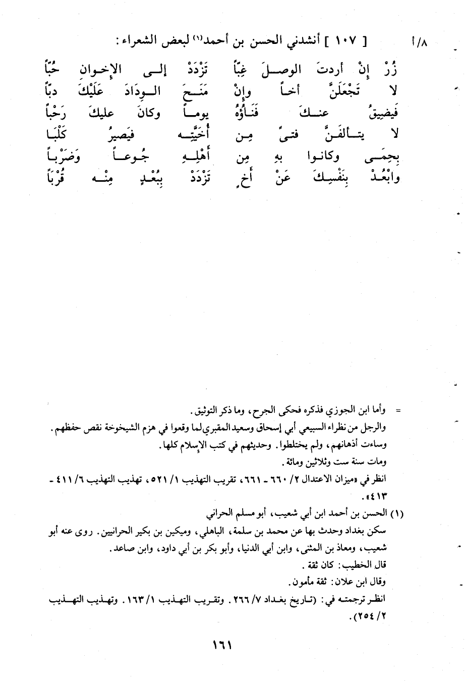 107 - أَنْشَدَنِي الْحَسَنُ بْنُ أَحْمَدَ لِبَعْضِ الشُّعَرَاءِ