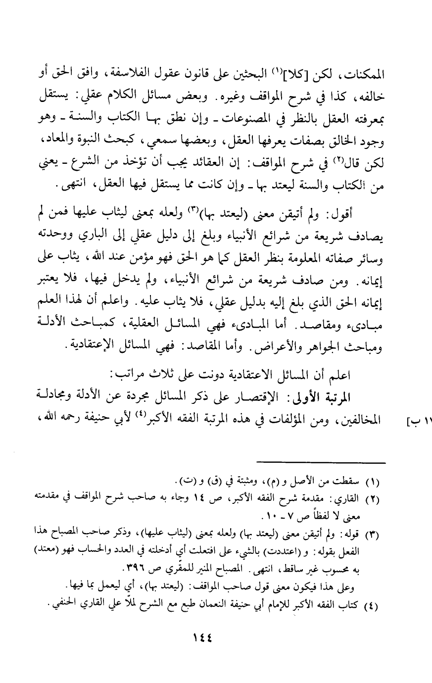 اعلم أن المسائل الاعتقادية دونت على ثلاث مراتب: