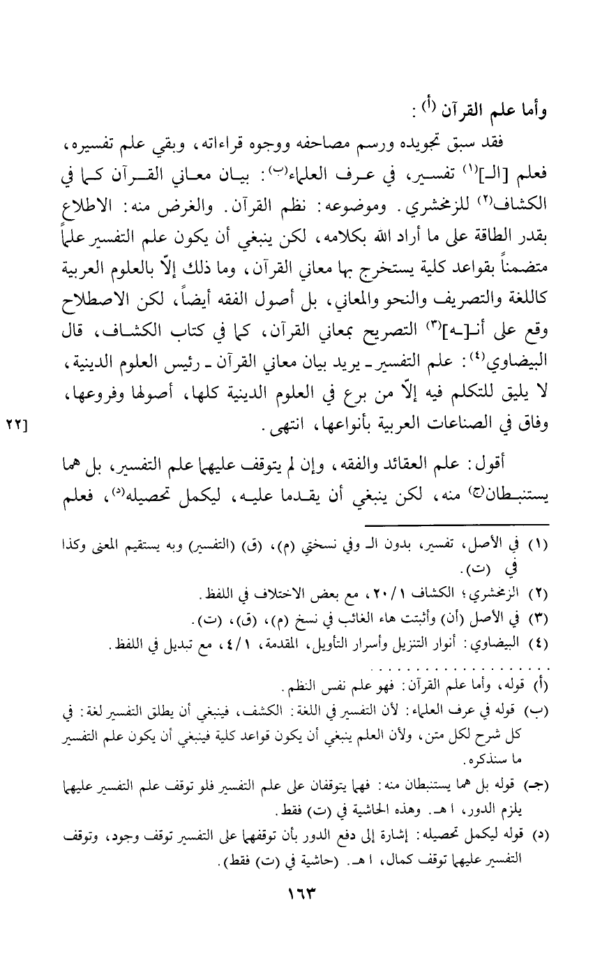 أقول: علم العقائد والفقه، وإن لم يتوقف عليهما علم التفسير، بل هما يستنبطان منه، لكن ينبغي أن يقدما عليه، ليكمل تحصيله، فعلم