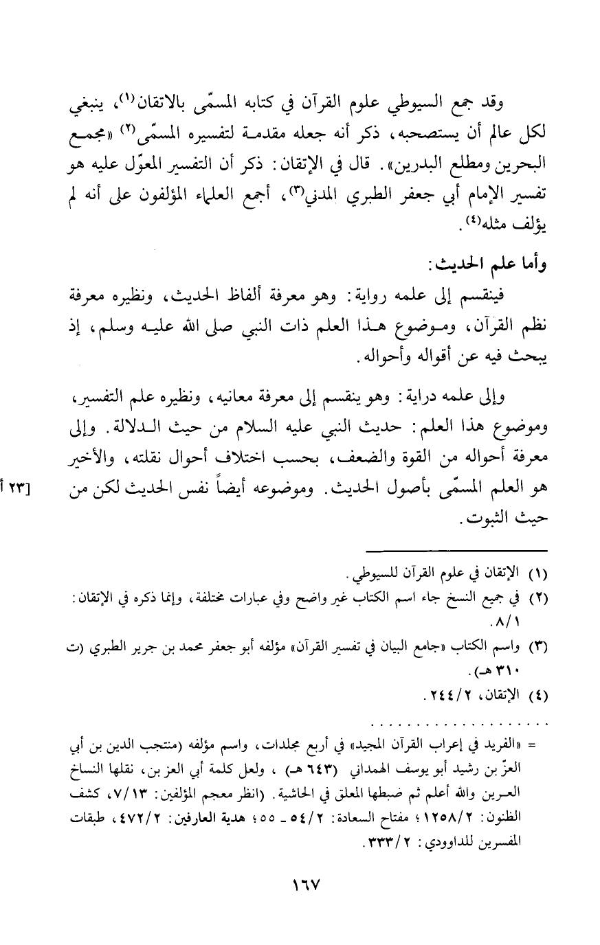 وقد جمع السيوطي علوم القرآن في كتابه المسمى بالإتقان، ينبغي لكل عالم أن يستصحبه، ذكر أنه جعله مقدمة لتفسيره المسمى "مجمع البحرين ومطلع البدرين" قال في الإتقان: ذكر أن التفسير المعول عليه هو تفسير الإمام أبي جعفر الطبري المدني، أجمع العلماء المؤلفون على أنه لم يؤلف مثله"