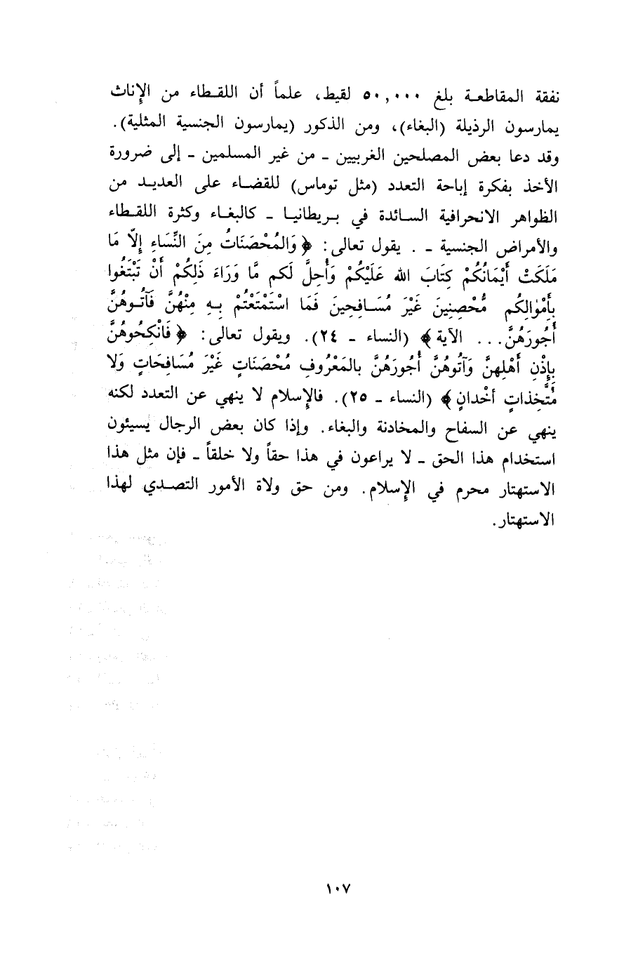 وقد دعا بعض المصلحين الغربيين -من غير المسلمين- إلى ضرورة الأخذ بفكرة إباحة التعدد مثل "توماس" للقضاء على العديد من الظواهر الانحرافية السائدة في بريطانيا -كالبغاء وكثرة اللقطاء والأمراض الجنسية- يقول تعالى: {وَالْمُحْصَنَاتُ مِنَ النِّسَاءِ إِلاَّ مَا مَلَكَتْ أَيْمَانُكُمْ كِتَابَ اللَّهِ عَلَيْكُمْ وَأُحِلَّ لَكُمْ مَا وَرَاءَ ذَلِكُمْ أَنْ تَبْتَغُوا بِأَمْوَالِكُمْ مُحْصِنِينَ غَيْرَ مُسَافِحِينَ فَمَا اسْتَمْتَعْتُمْ بِهِ مِنْهُنَّ فَآتُوهُنَّ أُجُورَهُنَّ} [النساء: 24] . ويقول تعالى: {فَانكِحُوهُنَّ بِإِذْنِ أهْلِهِنَّ وَآتُوهُنَّ أُجُورَهُنَّ بِالْمَعْرُوفِ مُحْصَنَاتٍ غَيْرَ مُسَافِحَاتٍ وَلا مُتَّخِذَاتِ أَخْدَانٍ} [النساء: 25] . فالإسلام لا ينهى عن التعدد لكنه ينهى عن السفاح والمخادنة والبغاء. وإذا كان بعض الرجال يسيئون استخدام هذا الحق -لا يراعون في هذا حقًّا ولا خلقًا- فإن مثل هذا الاستهتار محرم في الإسلام. ومن حق ولاة الأمور التصدي لهذا الاستهتار.