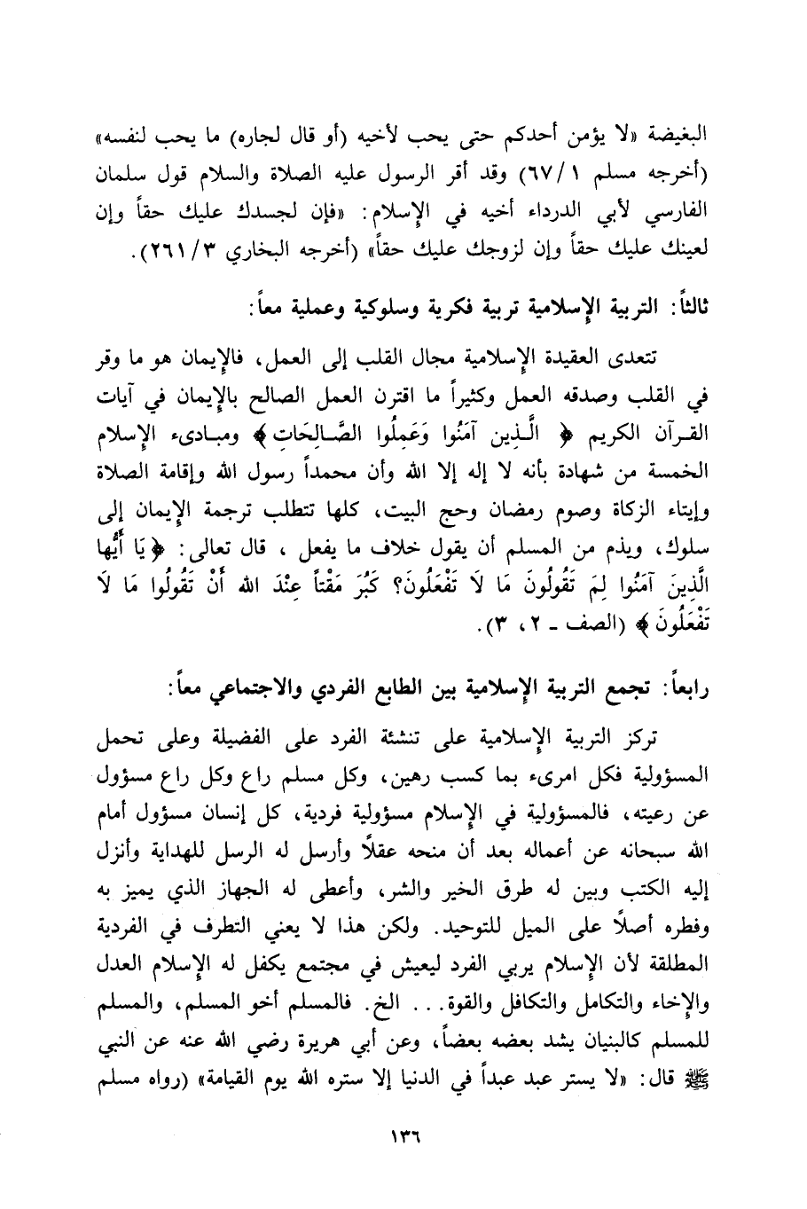 رابعا: تجمع التربية الإسلامبية بين الطابع الفردي والاجتماعي معا: